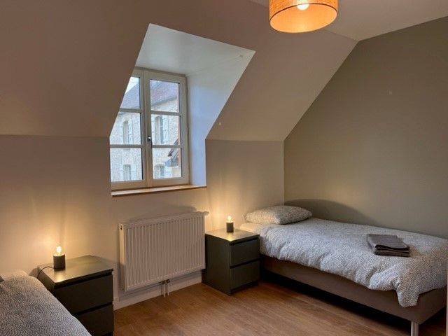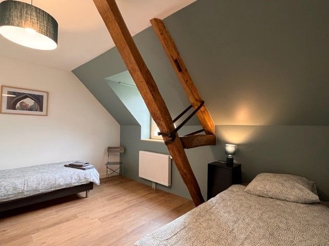 En effet, ce logement situé dans un ancien corps de ferme, en RDC et R+1, est composé d’un agréable séjour traversant avec une cuisine équipée, de 5 chambres (soit 10 lits au global), de 3 SdB et 3 WC.