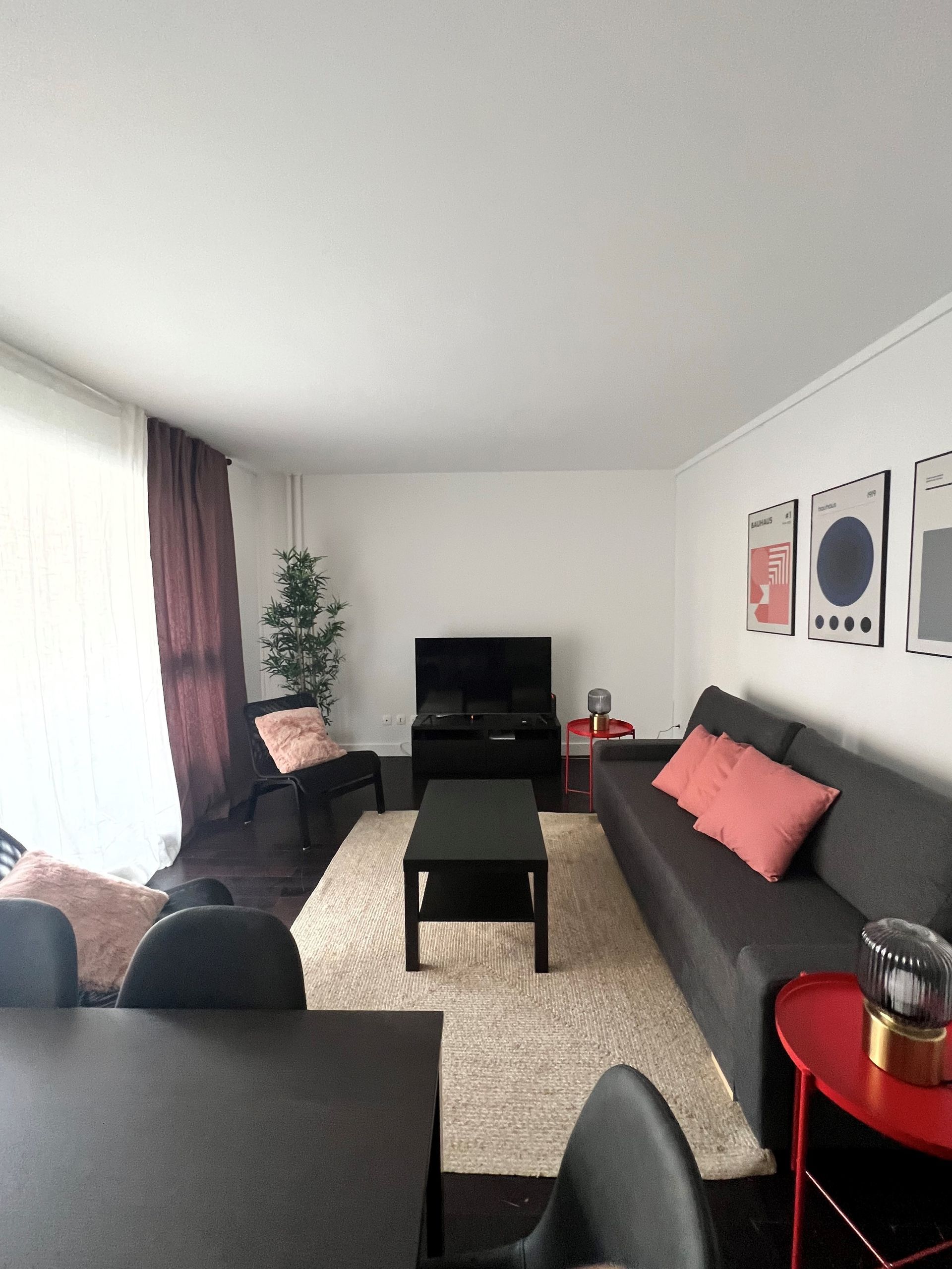 Residence with caretaker located in the town of Nanterre, a stone's throw from La Défense. The Nanterre-Préfecture RER A station is a 3-minute walk away. This furnished, equipped, and decorated apartment consists of a large living-dining room, a large separate kitchen, three bedrooms for two people, a bathroom, a laundry room, and a separate toilet. The rent includes Wi-Fi, linens, a secure parking space, and two large balconies.