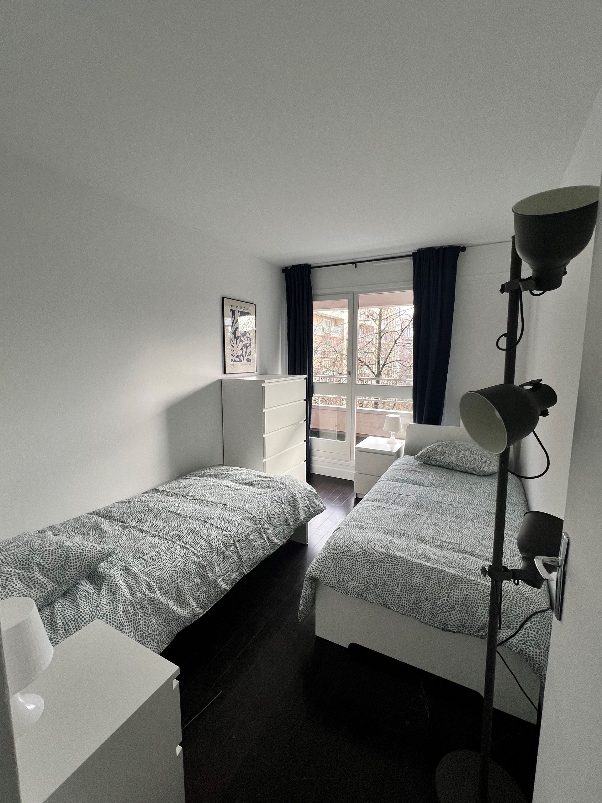 Rezydencja z dozorcą położona w miejscowości Nanterre, rzut beretem od dzielnicy La Défense. Stacja kolei RER A Nanterre-Préfecture znajduje się 3 minuty spacerem od apartamentu. Ten umeblowany, wyposażony i urządzony apartament składa się z dużego salonu z jadalnią, dużej, oddzielnej kuchni, 3 sypialni dla 2 osób, łazienki, pralni i osobnej toalety. W cenę najmu wliczone jest Wi-Fi, pościel, bezpieczne miejsce parkingowe oraz 2 duże balkony.